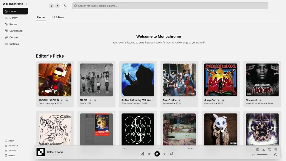 Monochrome describes itself as "an open-source, privacy-respecting, ad-free TIDAL web UI" built on top of an API project called Hi-Fi. In practical terms, this means it functions as an alternative interface for accessing TIDAL's extensive music catalog without requiring a TIDAL subscription. Users can search for artists, create playlists, stream high-fidelity audio, and even download tracks for offline listening-all without paying a cent or creating an account. The project is fully open-source on GitHub, where it has garnered significant attention from developers and music enthusiasts alike.